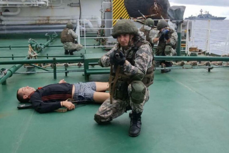 Освобождение «захваченного пиратами» судна стало частью учебной работы. Как рассказали в пресс-службе Северного флота, условные пираты захватили танкер, но экипажу удалось укрыться в машинном отделении, откуда они и вызвали подмогу.