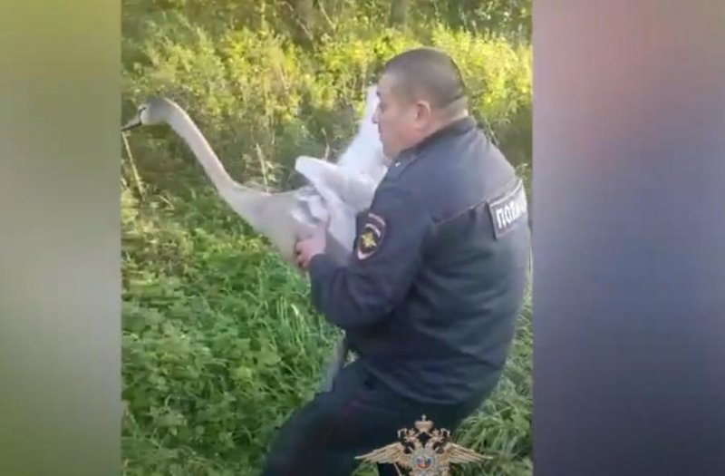 Лебедя пришлось спасать полицейским в Калининградской области (ВИДЕО)