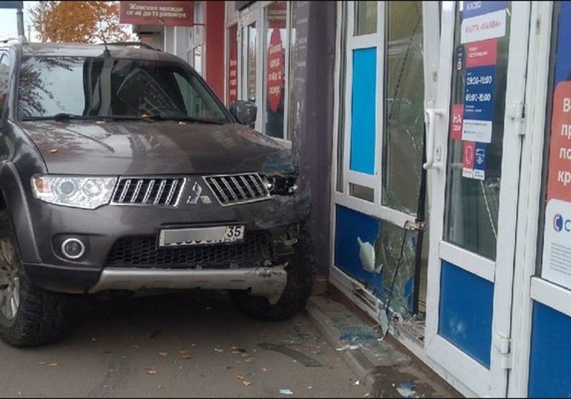Водитель внедорожника потерял управление и въехал в банк