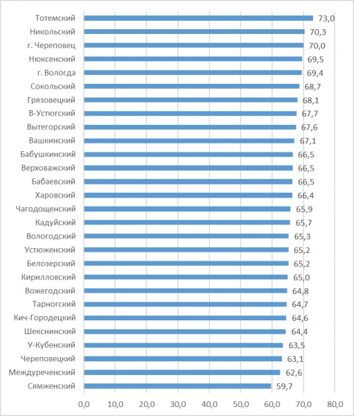 Наиболее активно прививочная кампания проходит в Тотемском, Никольском районах и Череповце. Там привилось уже более 70 процентов населения. Меньше всего стремятся уколоться в Сямженском, Междуреченском и Череповецком районах - около 60 процентов потенциальных здоровых людей. Вологда среди лидеров - на пятом месте с 69,4 процентами населения.