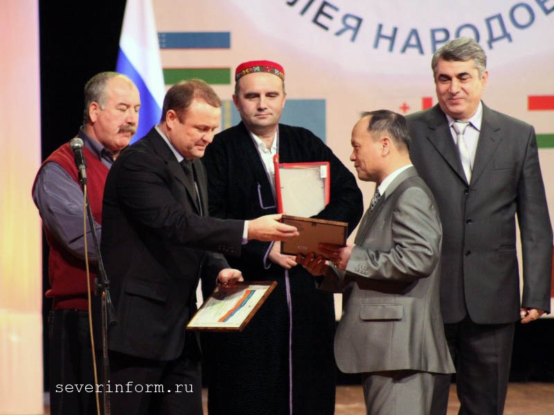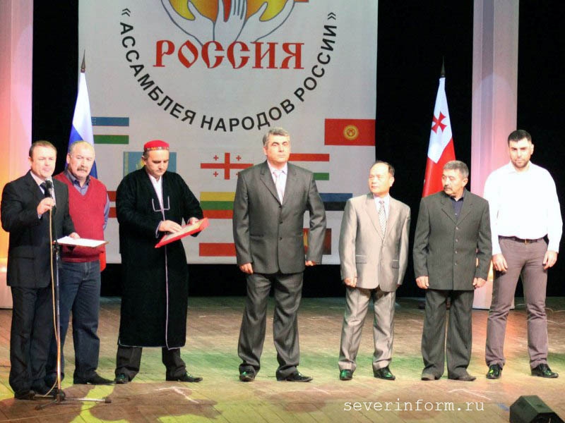 В этот день на сцену ДК ПЗ вышли представители всех диаспор, проживающих на территории Вологодской области: руководитель армянской - Сос Мурадян, таджикской - Авзолшо Дороншоев, вьетнамской - Куанг Нго, азербайджанской - Элизбар Оруджев, грузинской - Михаил Беридзе, киргизской - Саид Жароев, украинской - Леонид Прокопенко, узбекистанской - Алабердыя Холик, дагестанской - Гаджи Ашурилов.