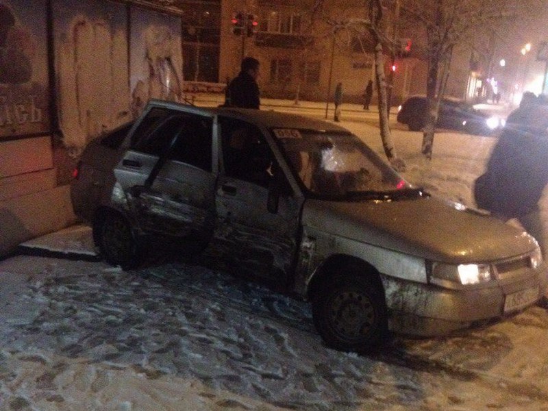 В Вологде столкнулись микроавтобус и легковушка, от удара автомобиль откинуло на тротуар. ДТП случилось 12 декабря, около 21:30, на перекрестке улиц Кирова – Ленинградская.