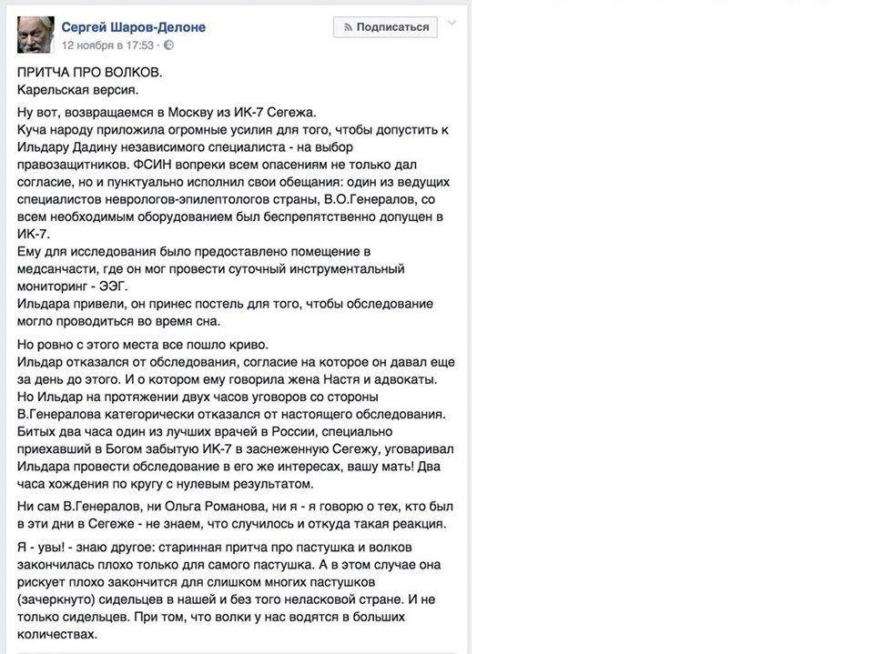 Добавим, в УФСИН по Вологодской области информацию о пребывании активиста в СИЗО ни подтвердили, ни опровергли. Как пояснили агентству в пресс-службе ведомства, ФСИН не имеет права разглашать кому бы то ни было информацию о местонахождении заключенного или этапируемого без его согласия и письменного заявления.