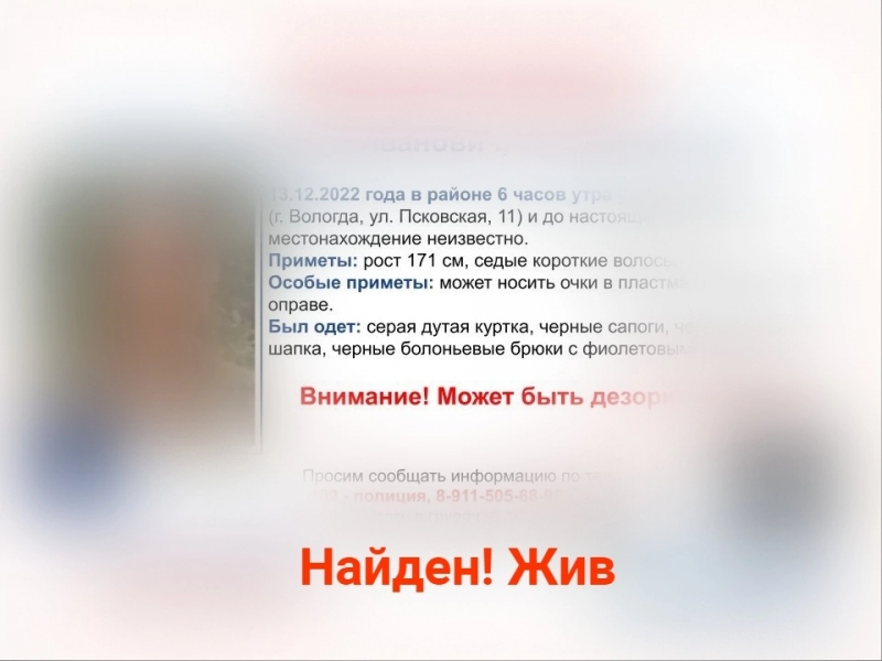 По данным ПСО «Ты не один», мужчина ростом 171 сантиметр, с седыми короткими волосами. Был одет в серую дутую куртку, черные сапоги, черную вязаную шапку, черные болоньевые брюки с фиолетовыми полосами.