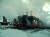 Добавим, что пожарной машине из Грязовца добраться непосредственно к горящему дому не удалось - из-за отсутствия дороги автомобиль застрял. Кроме того, в тушении был задействован пожарный поезд.