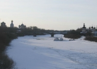 Толщина льда постепенно растет на реке Вологде