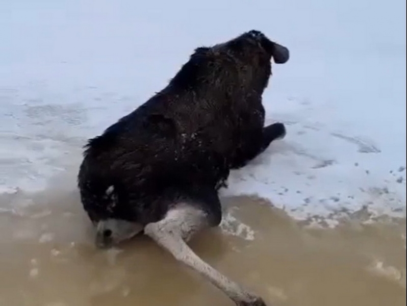 Лось провалился в полынью