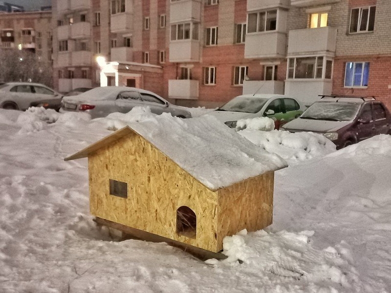 В Череповце в Зашекснинском районе во дворе одного из домов за Ледовым дворцом появилась «будка» для птиц.