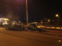 Три человека серьезно пострадали при столкновении иномарок на мосту