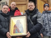 Это произошло в Московском храме на Берсеневке. Волонтерам передан список знаковой мироточивой иконы Божией Матери Песчанская для передачи жителям Донбасса.
