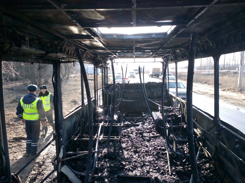 В Череповце сгорел пассажирский автобус
