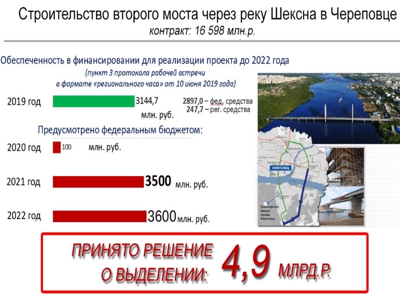 4,9 миллиарда рублей выделят в 2020 году на продолжение строительства моста в Череповце