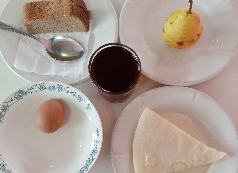 «Спасите детей! Школьное меню на 13 апреля: манный пудинг со сгущенным молоком, яйцо вареное, чай, хлеб, груша. Это обед».