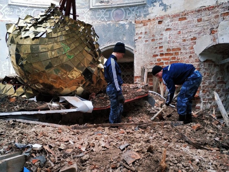 Студенты второго курса юрфака всю весну трудятся на благо церкви. Они разбирают завалы, вычищают многолетний мусор и готовят храм к строительным работам.