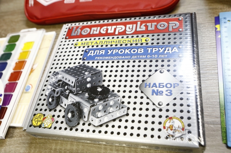 По традиции будущие ученики получают канцелярские принадлежности. Набор «В первый раз в первый класс» включает 13 предметов. В их числе карандаши, краски, пеналы, конструкторы. Не стоит забывать и про безопасность на дорогах. Школьники получают светоотражатель-смайлик.