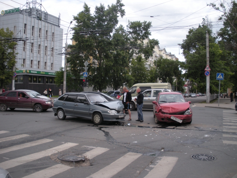 Большая «пробка» образовалась сегодня, 14 июня, в центре Вологды. На пересечении улиц Герцена – Зосимовская столкнулись два легковых автомобиля – ВАЗ 14 модели и «Лада Калина». Об этом сообщает ИА «СеверИнформ – Новости Вологды» со ссылкой на пресс-службу ГИБДД. Авария произошла около 14 часов. К счастью, пострадавших нет. Кто стал виновником ДТП, пока не сообщается. По словам очевидцев, из-за столкновения образовалась «пробка» во все четыре стороны от места происшествия. Водителям следует объезжать этот участок дороги.