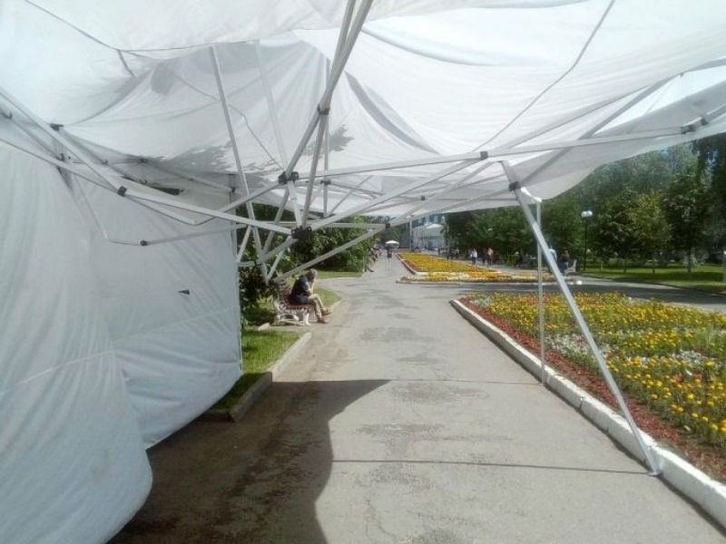 Четыре шатра были отремонтированы в течение дня, а вот один пришлось убрать.