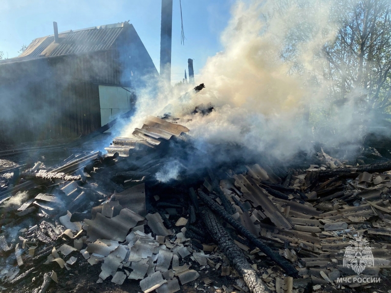 Началось все с непотушенной сигареты. В двухквартирном доме жила 52-летняя женщина. Она успела выйти из дома до приезда пожарных. Огонь был такой сильный, что перекинулся с дома на баню, дровяник и два сарая.