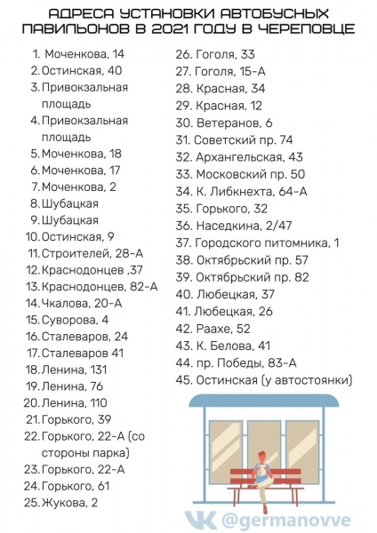 В мэрии изучили все жалобы и пожелания череповчан и выбрали для замены именно те остановки, которые вызывают массу нареканий. По словам мэра Череповца Вадима Германова, с них и начнется работа.