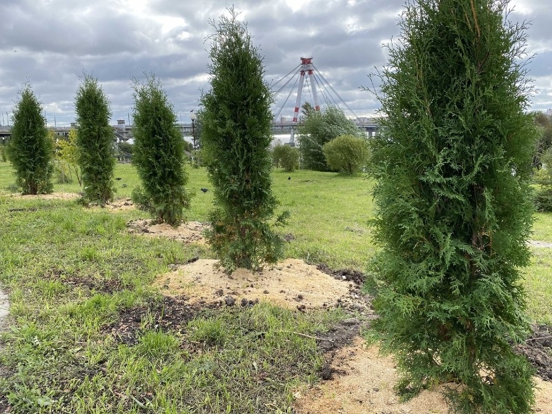 Для начала будет высажено 314 туй. Подсыпать приствольные круги деревьев решили мульчой. Она поддерживает необходимую влажность почвы и помогает растениям приживаться в новом месте.