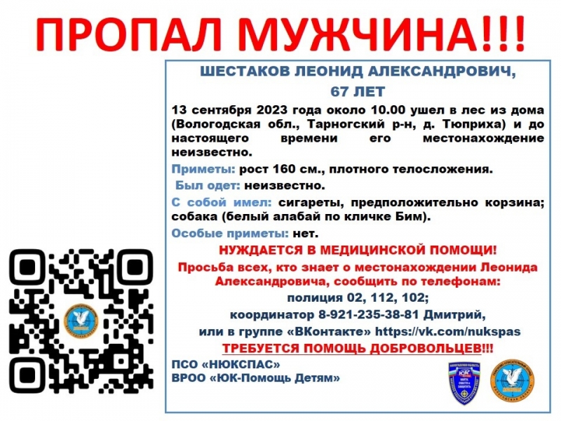 Всем, кто может помочь в поисках, просьба обратиться по указанным телефонам, сообщает ИА «СеверИнформ».