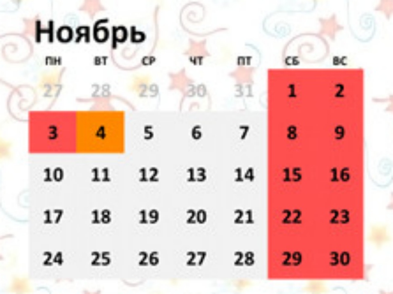 Дня народного единства 4 ноября, а также переносом одного выходного дня с февраля.