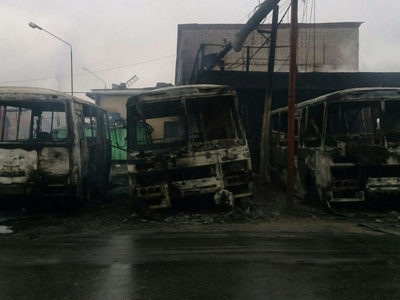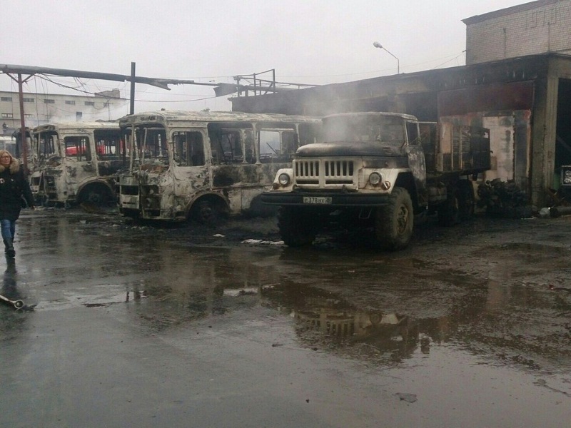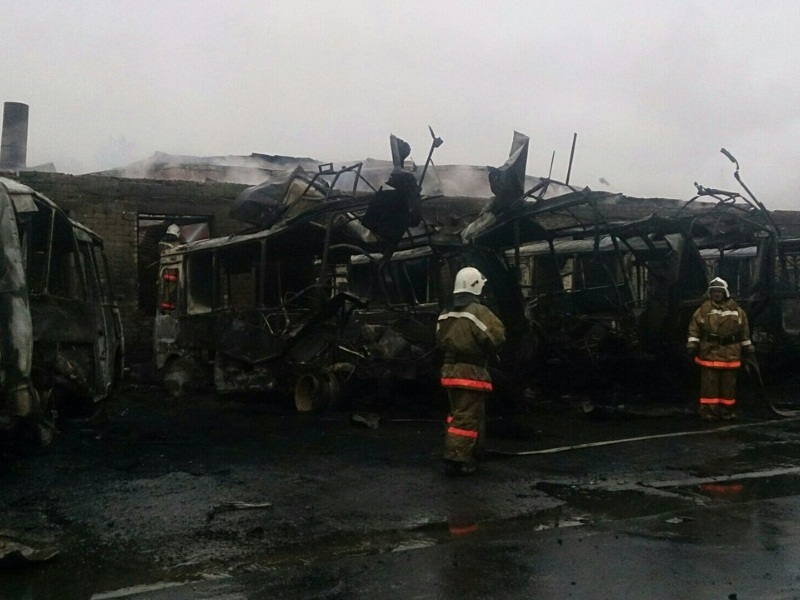 По предварительным данным, пожар произошел в автобусах "ПАЗ" на стоянке с дальнейшим распространением огня на 2 рядом стоящих здания. В итоге в огне оказались 21 автобус "ПАЗ", 1 "ГАЗель", 1 грузовик. Огнем также задеты соседнее дощатое здание и кровля здания из кирпича.