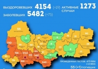 Число активных случаев достигло 1275. Выздоровели 4154 человек, за сутки – 19.