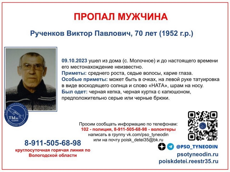 Если обладаете информацией о месте нахождения мужчины, позвоните по телефонам 76-50-01, 76-30-14 или 911-505-68-98, сообщает ИА «СеверИнформ».