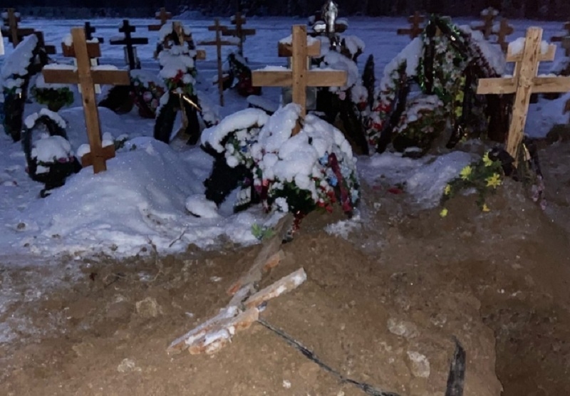 ЧП на Успенском кладбище случилось вчера, 13 ноября: местные жители обнаружили разрытую могилу женщины, умершей около месяца назад, и медвежьи следы рядом с ней. Как выяснилось, покойницу косолапый уволок в лес: тело несчастной нашли и в дальнейшем перезахоронят.
