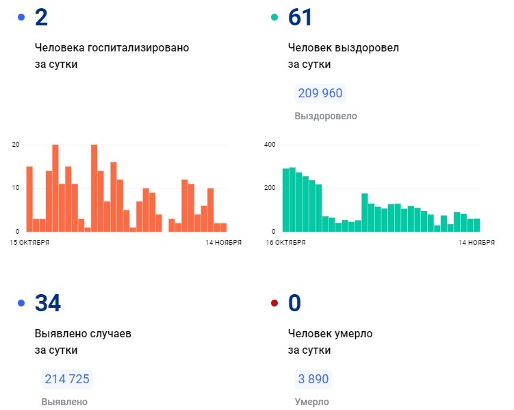 Сейчас в регионе ковидом болеют 875 человек. За последние сутки подтвердилось 34 новых случая, 61 пациент выздоровел, двое попали в больницу, никто не скончался, сообщает ИА «СеверИнформ».