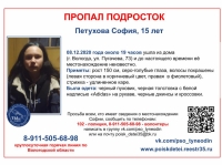 15-летняя София Петухова ушла из дома на Пугачева, 73. Это произошло еще 8 декабря, с тех пор неизвестно, где находится подросток. К поискам подключились волонтеры.
