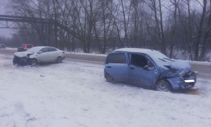 По предварительным данным, виноват 56-летний водитель «Дэу Матиза». Он не учел, что дорожное полотно покрыто рыхлым снегом и не справился с управлением. «Матиз» вылетел на встречку, где влобовую протаранил «Киа Рио», которым рулил 35-летний водитель.