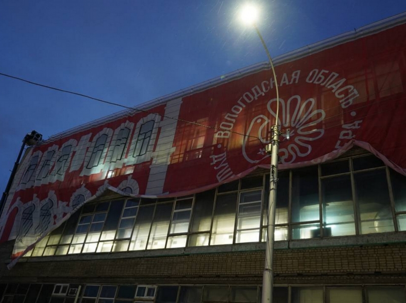 «Разработали макет, сделали полотно. Монтаж начался и будет завершен на выходных. Это временная мера, фасад здания нужно ремонтировать», - сказал мэр Вологды Андрей Накрошаев.
