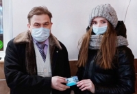 Акция проходит с начала февраля. На прошлой неделе определили юбилейного пассажира, расплатившегося банковской картой. Сегодня прошло награждение. Призом для девушки стал проездной на март.
