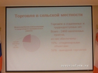 «Мы не должны забывать о тех населенных пунктах, где остаются по 50, а то и 20 жителей. Это в основном отдаленные населенные пункты. Только в 19% из них имеются стационарные магазины. 56% этих населенных пунктов обеспечивается выездной торговлей, - отметила начальник Управления торговли Департамента сельского хозяйства, продовольственных ресурсов и торговли Вологодской области Ирина Романова. - А ряд деревень, в которых проживает, условно говоря, по 2 бабушки, не обеспечивается вообще. То есть за продуктами приходится ходить в соседние населенные пункты».