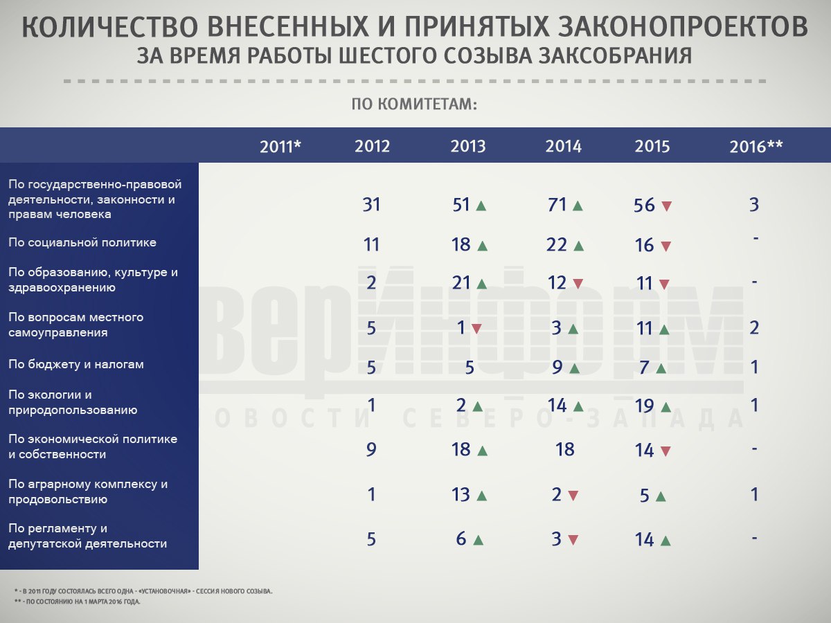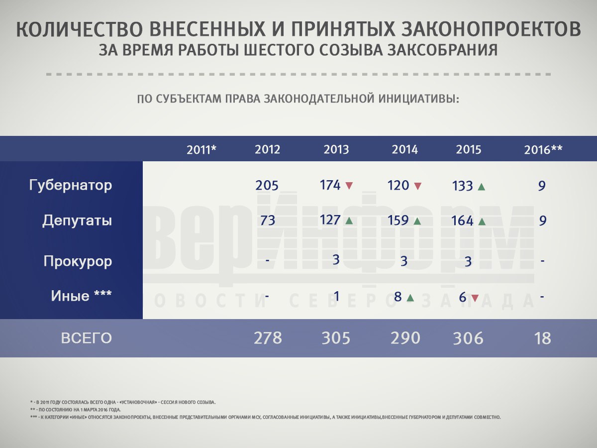 В преддверии приближающихся выборов в региональное Заксобрание редакция ИА «СеверИнформ» решила выяснить, кто же был самым активным законотворцем в Вологодской области в период работы ЗСО VI созыва - с конца 2011 по начало 2016 года. Статистика оказалась весьма любопытной.
