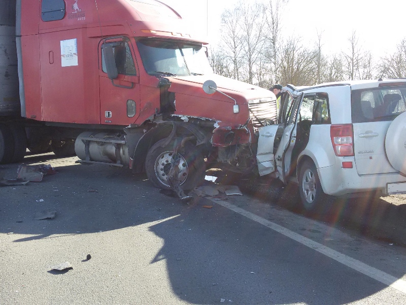 "Тягач и внедорожник столкнулись на 142 километре трассы "Вологда – Новая Ладога". По предварительным данным, 40-летний водитель тягача Freightliner не выдержал безопасную дистанцию до впереди идущего грузовика Volvo. В результате этого транспортные средства столкнулись. После тягач выехал на "встречку", где в него въехал автомобиль Suzuki. За рулем иномарки находился 34-летний мужчина", - сообщили корреспонденту ИА "СеверИнформ" в пресс-службе УМВД России по Вологодской области.