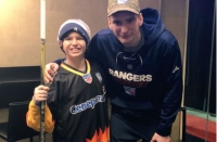 Юный поклонник бывшего нападающего «Северстали» играет в детской хоккейной команде "Рейнджерс". Мальчик подошёл к стеклу на разминке в свитере «Северстали» и фамилией Бучневича на спине. Хоккеист перебросил через бортик клюшку и поблагодарил традиционным ударом кулаками. Получив клюшку от российского спортсмена, мальчик расплакался, пишет портал Аllhockey.ru.