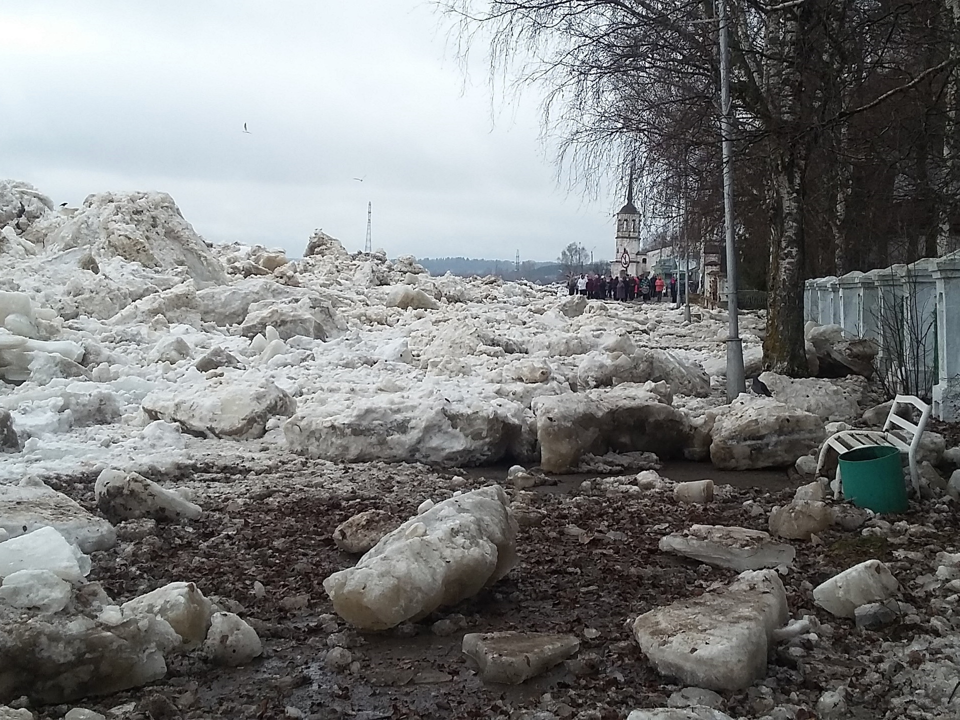 Напомним, в Великоустюгском районе ввели режим чрезвычайной ситуации. В Великом Устюге река вынесла лед прямо на набережную.