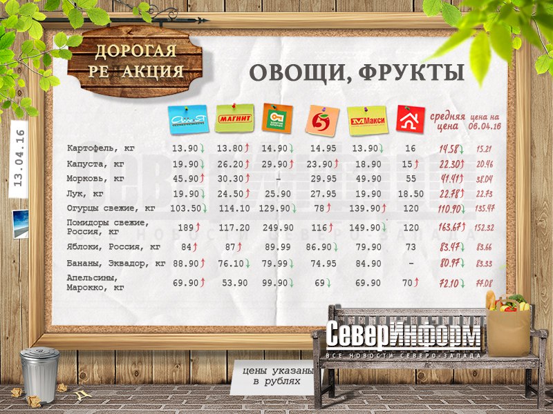 Сегодня пятница, а это значит, что настало врем нашей традиционной рубрики «Дорогая ре(д)акция». Корреспонденты ИА «СеверИнформ» в очередной раз обошли ряд вологодских магазинов, чтобы рассказать читателям о самых выгодных ценах. Итак, начнем. На этот раз громче всего заявили о себе огурцы - скинули аж 25 рублей. Чуть меньше рубля скинул картофель. Зато капуста, морковь, лук и помидорки обросли красными стрелочками.
