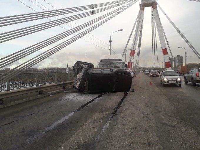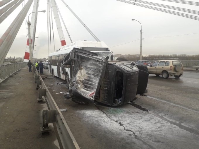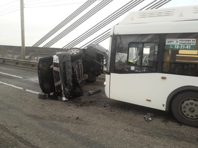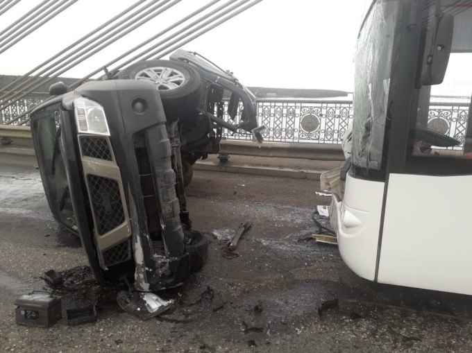 Внедорожник врезался в автобус на Октябрьском мосту в Череповце