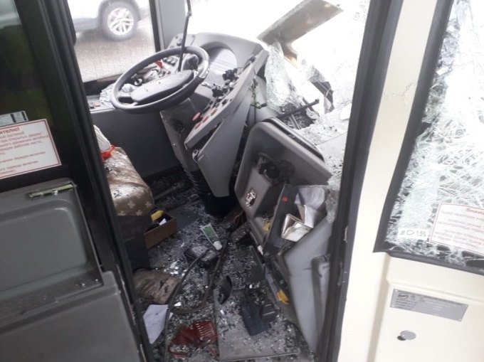 Момент ДТП попал на запись видеокамеры, установленной на мосту. Автомобиль "Ниссан" вылетел на встречную полосу и столкнулся с автобусом "ЛиАЗ". От удара внедорожник перевернулся. К счастью, в автобусе №27 не было пассажиров. В результате аварии погибших нет. 48-летний водитель "Ниссана" получил закрытую черепно-мозговую травму и сотрясение мозга. 53-летней женщине-кондуктору осколками стекла порезало лицо.