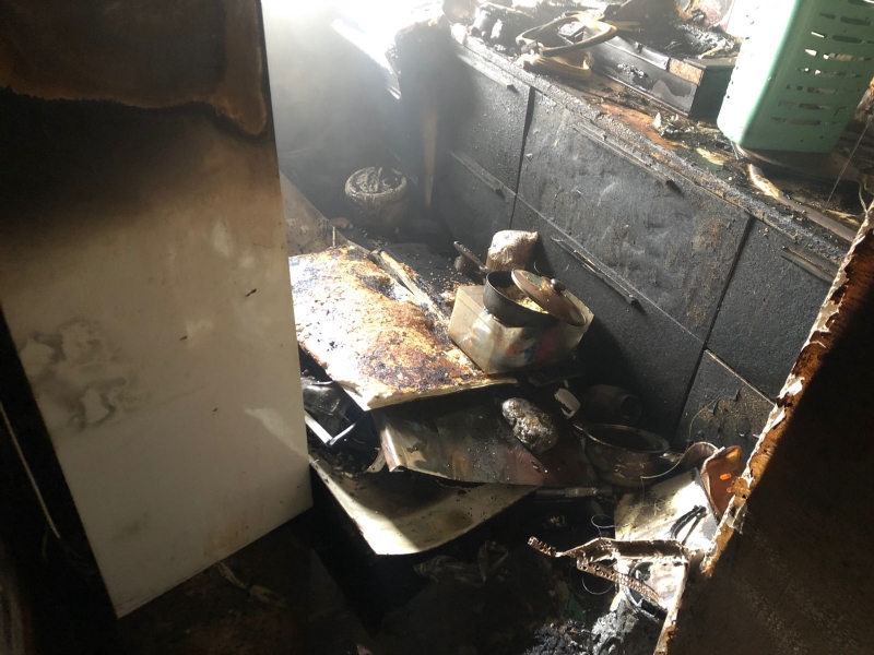 На место выезжали 19 человек и 6 единиц техники. Огонь уничтожил внутреннюю отделку кухни, бытовую технику, кухонный гарнитур, оконную раму. Повреждена отделка в остальных помещениях квартиры и лестничная клетка на втором этаже.
