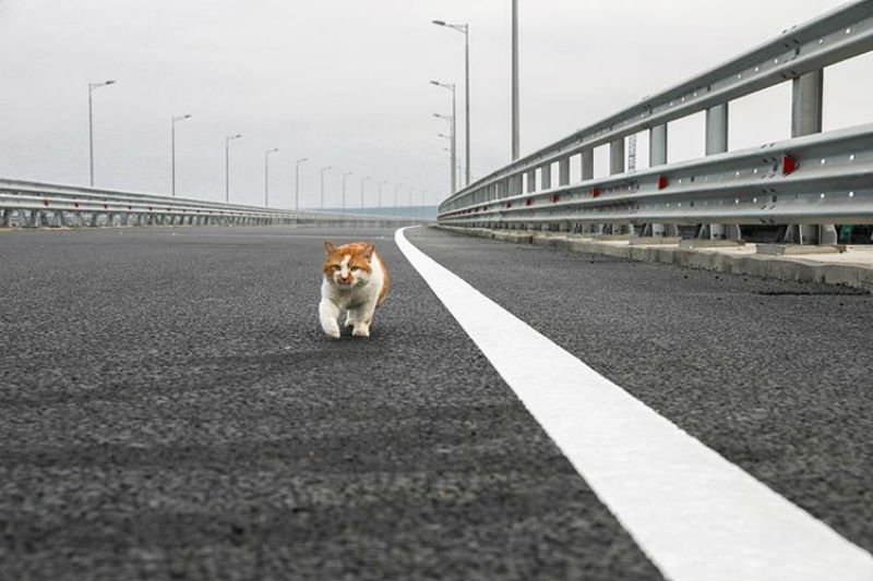 Кот Мостик первым прошел весь путь по Крымскому мосту