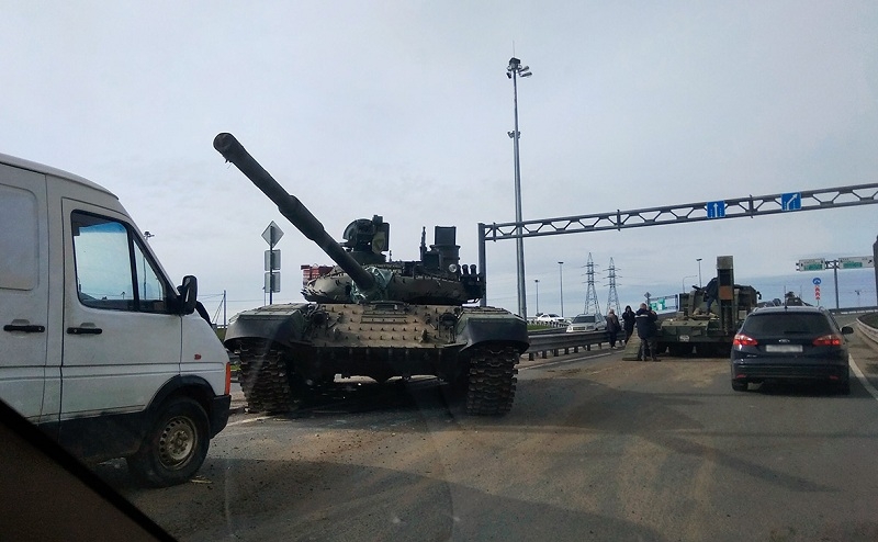 На кольцевой автодороге (КАД) Санкт-Петербурга сегодня утром перекрыл движение танк. Как пишет РБК со ссылкой на Упрдор «Северо-Запад», боевая махина съехала с грузового прицепа, перевозившего военную технику. Инцидент произошел около 10 часов утра на 84 км внутреннего кольца — на съезде со стороны Ленобласти.