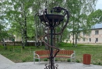 «Медицинскую чашу со змеей» установили в Вожеге, в сквере на улице Советской. Скульптуру выковала организация из Вологды, а эскиз создал кузнец из Устюжны, пишет администрация района.