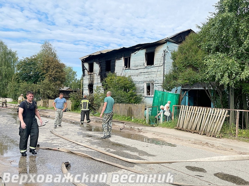 Пожар произошел в 2-этажном деревянном доме в селе Верховажье.