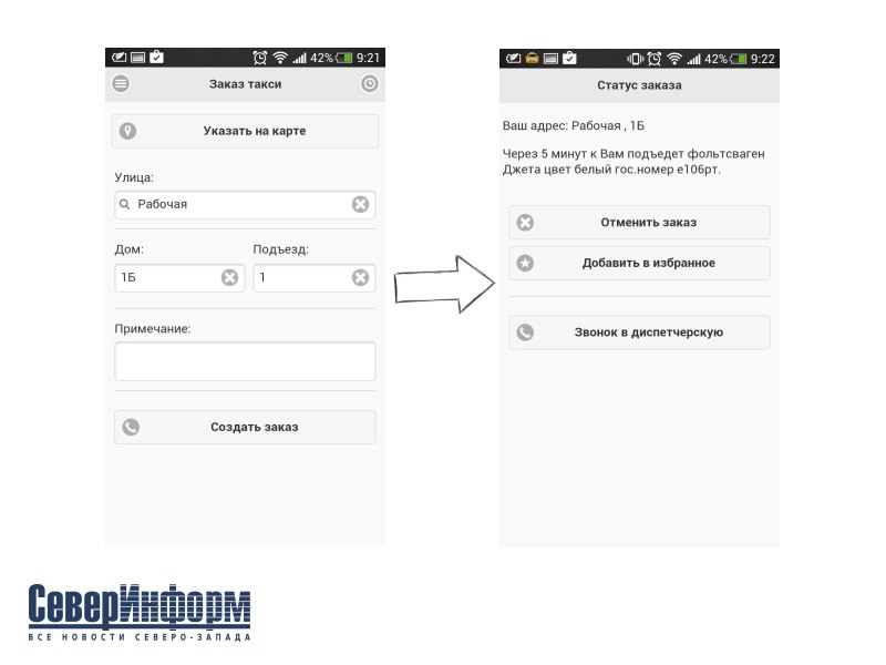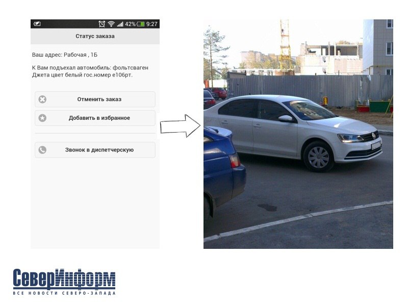 Когда все поля заполнены, оформляем заказ. Оперативность ответа приятно удивляет. Сразу же приходит сообщение с указанием марки и номера машины, а также сроком ее прибытия к вам. В нашем случае машину не пришлось ждать и пяти минут.
