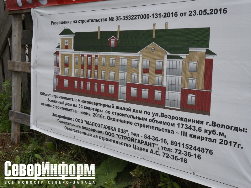Речь идет о 34-квартирном доме, который строит ООО «Малоэтажка-35» на улице Возрождения, рядом с санаторием «Бодрость»